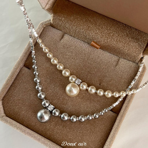 グレーと白のShijiaパールブロークンシルバーネックレス2個[無料の絶妙なギフトボックス]