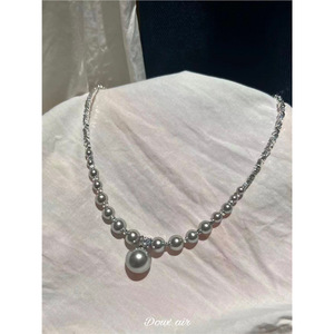 925 スターリングシルバーブロークンシルバー石家真珠ネックレス女性の 2024 新しいネックレスグラデーションビーズ鎖骨チェーン送料無料