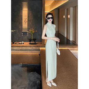 Lingqian Zihuo 緑の刺繍の新しい中国風のエレガントな刺繍改良されたチャイナドレス夏の女性の美しいドレス
