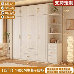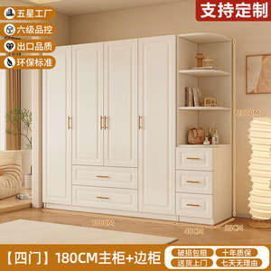 实木衣柜主卧四门耐用客厅大容量出租房衣橱新款加厚加固奶油风厂