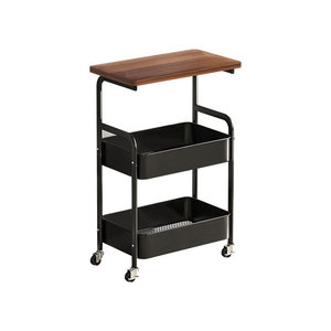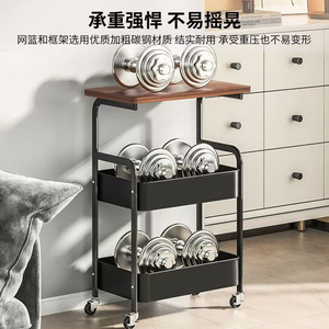 可移动家用多层厨房客厅碳钢收纳架零食收纳车带桌板小推车置物架