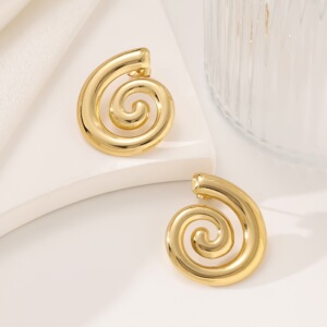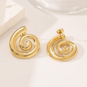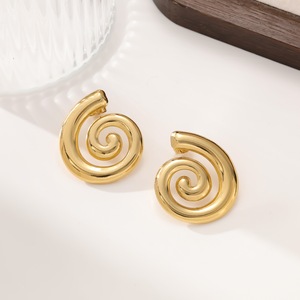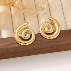 ヨーロッパとアメリカの人気のニッチデザインハイエンドイヤリングレトロチタン鋼電気メッキ18Kゴールドスイングコンクイヤリング卸売