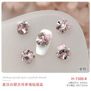 2025 新ファットスクエアパイルダイヤモンドローズ完成ネイルアートジュエリーインターネットセレブホットスタイルジュエリー金属立体ネイルデコレーション