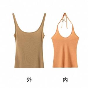 2025春夏デザインコントラストカラースリムサスペンダーコンビベストその他レギュラー