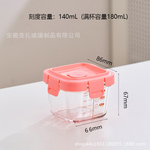 栄養補助食品ボックス 角型目盛り付き 140ml + ピンク PP 通気性蓋