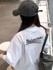 パリ高品質 25 新しいコーラプリント B ファミリーウェーブ Shijia 半袖クラシックルーズ Tシャツヘビースモールネックライン