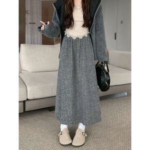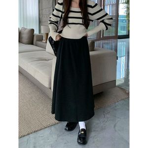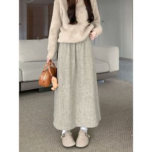 小个子加绒a字半身裙女秋冬松紧腰半裙2025春季新款中长裙子百搭