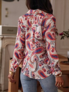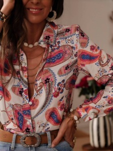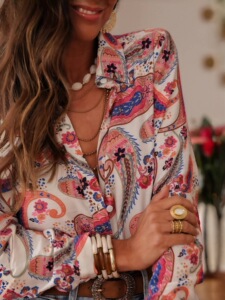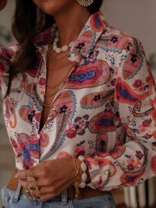 2025春秋亚马逊跨境外贸新品,棉麻质感的数码印花常规衬衫,女士