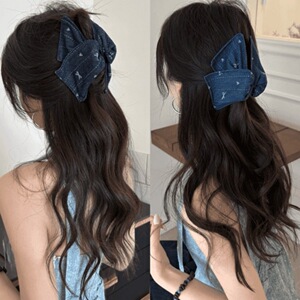 女性用リボンラブデニム三角グリッパー、新しいハイエンドヘアクリップ、後頭部シャーククリップ