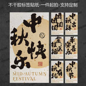 中秋快乐贴纸不干胶中秋节月饼礼盒礼物封口贴装饰标签可标贴
