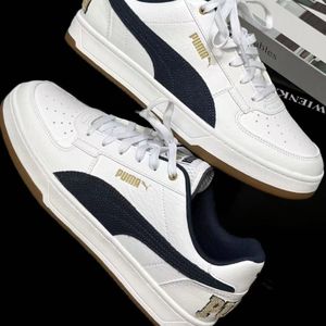 莆田の新しいpmホワイトダークブルーレトロトレンディなシンプルな個性ロートップカジュアルスポーツスニーカー、男性と女性のカップル用