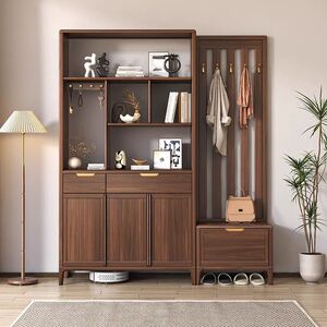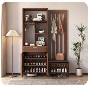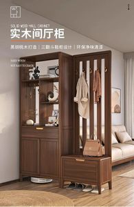 新中式间厅柜鞋柜一体黑胡桃木现代轻奢入户隔断柜客厅玄关柜