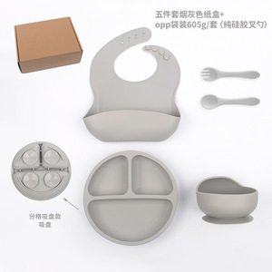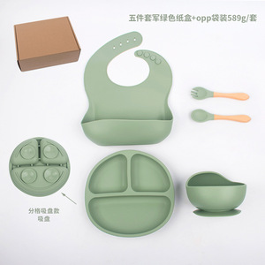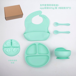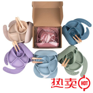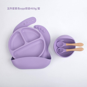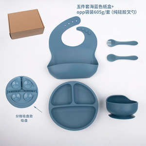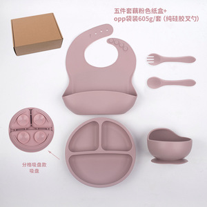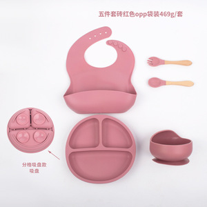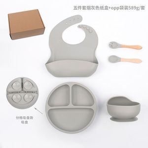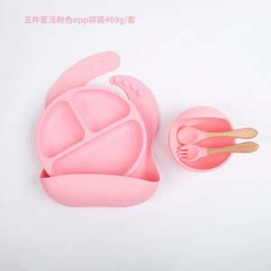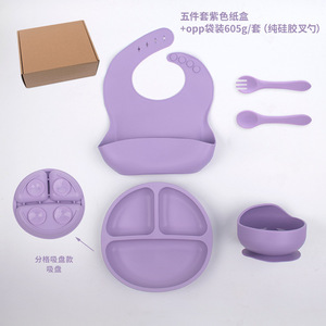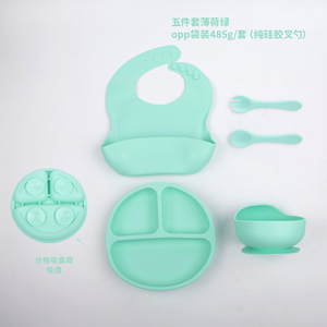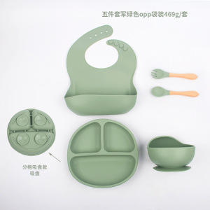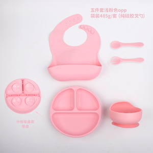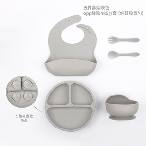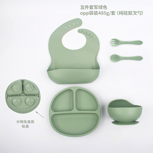 国境を越えた売れ筋の子供用栄養補助食品シリコンディナープレートボウルフォークスプーンよだれかけ5ピース食器セット落下防止ディナープレート吸盤
