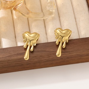 ヨーロッパとアメリカのクロスボーダーレトロ18Kゴールドメッキステンレススチールラブメルティングイヤリングレディーストレンディで多用途なイヤークリップイヤリング