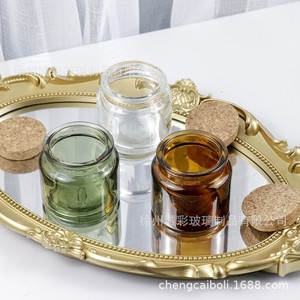 レトロな茶色の高温耐性蓋付き手作りアロマキャンドルカップ DIY 空のカップワックス容器コルクガラスボトル