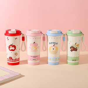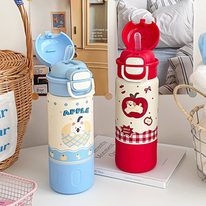 フルーツと動物シリーズの断熱カップ、見栄えの良い316ステンレス鋼のウォーターカップ、コーヒーカップ、ダブルドリンク子供用ストローカップ