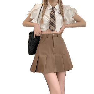 アメリカンプリーツスカート露出防止スカート女性のための夏の2025新しいハイウエストスリムカレッジスタイルAラインショートスカート