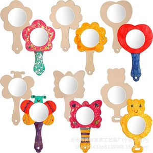 10 個木製ミラークラフト子供の装飾プリンセスミラー女の子 DIY 着色絵画木製ハンドヘルドミラー