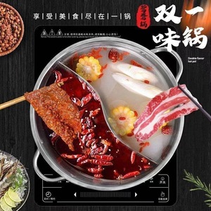 鸳鸯锅火锅盆带盖加厚鸳鸯家用不锈钢锅电磁炉明火专用