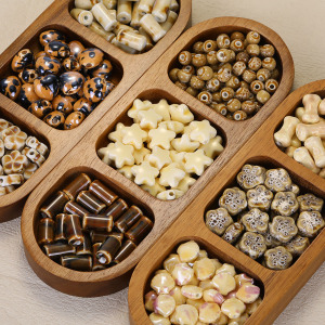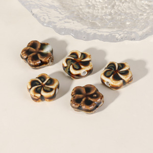 レトロセラミックビーズ手描きの愛の花ラウンドビーズハロー染めビーズルースビーズ diy 素材ブレスレットネックレスビーズアクセサリー