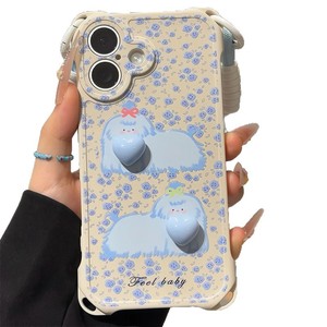 フルスクリーンブルーフラワードッグ02S+人形+ストラップ+ストラップ四隅落下防止ホワイト