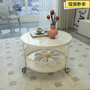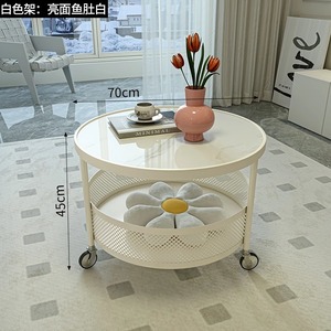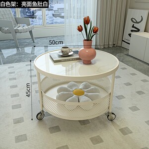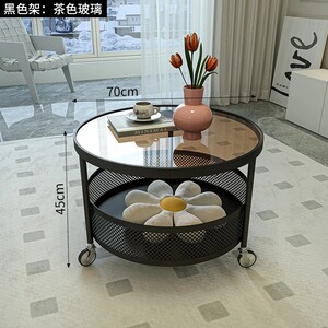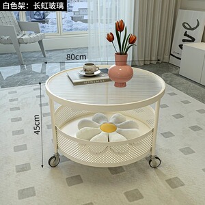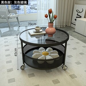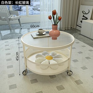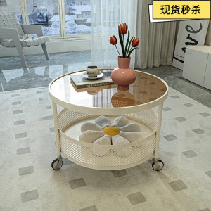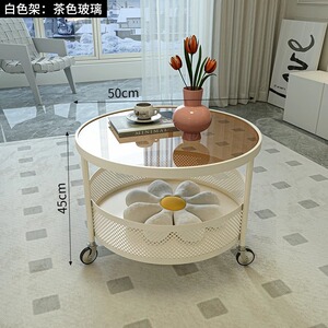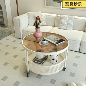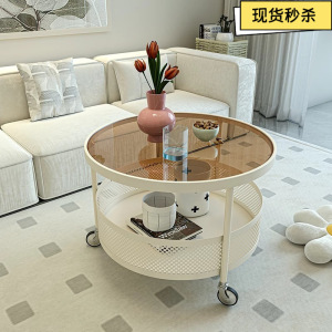クリーム色の小さな丸い小さなアパートのホームリビングルームシンプルなソファガラスサイドテーブルライト高級モバイルラウンドテーブルインターネットセレブコーヒーテーブル