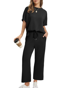 2025 夏の新ヨーロッパとアメリカのクロスボーダー女性のスーツ半袖トップカジュアルクロップドパンツワイドレッグパンツ女性の服