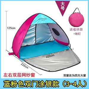 3~4人用の大きなピンクブルーシルバーコーティングモデル、ドア付き、無料収納バッグ_床釘