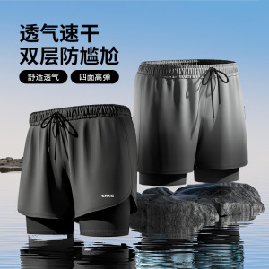 Honxing Erke 水泳パンツ恥ずかしくないボクサーパンツゆったり温泉水着メンズ 5 点二層水泳パンツ