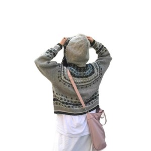 在庫あり 2025冬新作韓国東大門フード付きジャカードニットカーディガンフェアアイルセーター