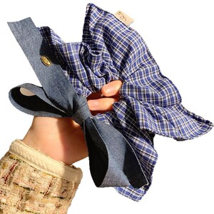 デニムリボンスクエアスカーフポニーテールヘアバンド大高級スクエアヘッドバンドチェック柄無地ヘアバンドヘアアクセサリー