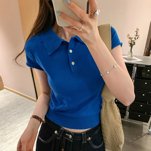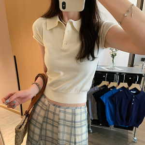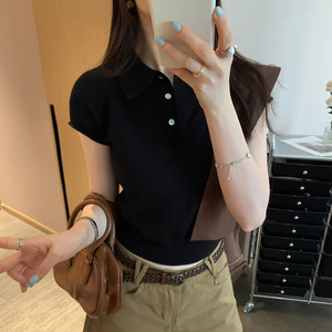 女性のための西洋スタイルのポロカラー半袖セーター 2025 夏の新しいスタイルのユニークでシックな気質の女性のためのショート T シャツトップ