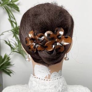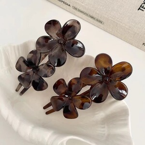 フラワーバンクーペビルクリップ-ダブルフラワーヒョウ柄ブラウン