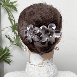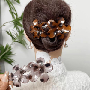 フラワーバンダーカモノハシクリップ-ダブルフラワーヒョウ柄グレー