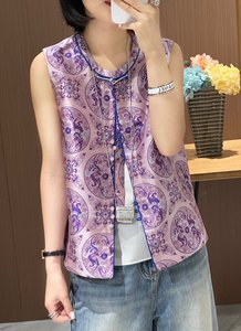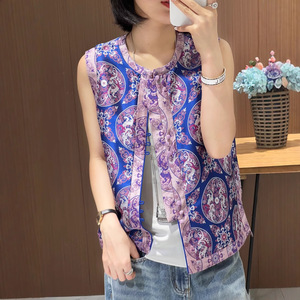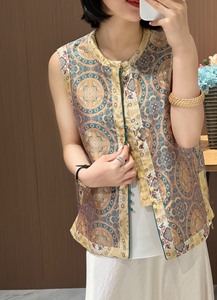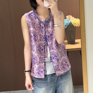 2025 新しいマルベリーシルク蜀錦リバーシブル新中国風のベスト女性のラウンドネックレトロジャカードアウタートップ