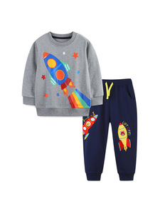 工場直接販売男の子長袖スーツファッションロケットプリントラウンドネックプルオーバーファッション刺繍子供スウェットパンツ