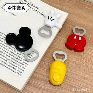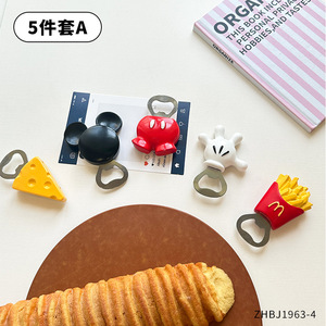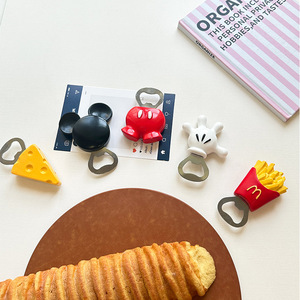 ミッキーボトルオープナーフライドポテトバーガー家庭用多機能クリエイティブ磁気ビールオープナーかわいい漫画キーホルダー