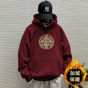 酒红色连帽卫衣加绒款-2220【GL】