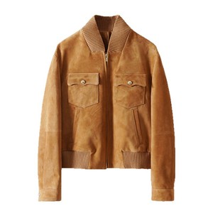 本革ジャケット HN5257 ファーストレイヤー ゴートスエード ニット スタンドカラー レトロ ヨーロッパ アメリカン スタイル ベースボールジャケット 万能ジャケット