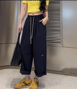 韓国風ファッションハイウエストカジュアルパンツ夏の新作ゆったり痩身万能薄手9点パンツワイドパンツ