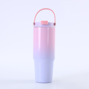 跨境渐变手提冰霸杯30oz汽车杯加厚304不锈钢保温杯高颜值吸管杯