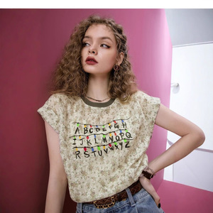 妖精的口袋满印复古碎花雪纺蕾丝衫女2025夏新款气质小衫薄纱上衣