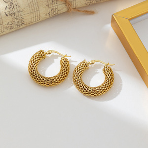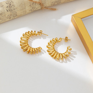 クロスボーダーレトロステンレススチールイヤリング、ヨーロッパとアメリカのミニマリスト、色あせしないハイエンドイヤリング、軽い高級感、パーソナライズされたニッチアクセサリー