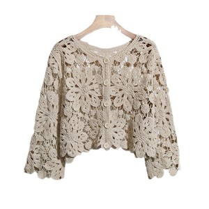 春夏ニットかぎ針編みジャケットレディースボヘミアンスタイル中空織り長袖カーディガンエアコン付きトップス1062