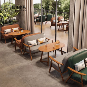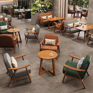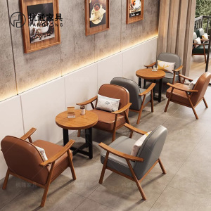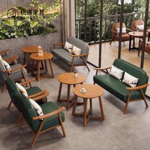 カフェソファスターバック同スタイルカジュアル商談受付無垢材小型ラウンドテーブルケータリングミルクティーショップテーブルと椅子の組み合わせ