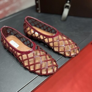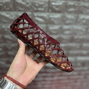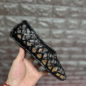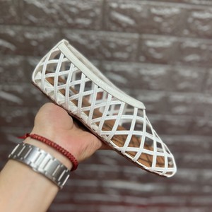 トップバージョン!女性のための編まれた中空バレエシューズ 2025 夏の新しいレトロなフラット本革スリッポンサンダル