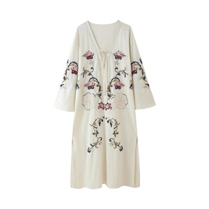 BSK&TRAF女装2025年夏季新款 复古名族风花朵刺绣连衣裙5107075