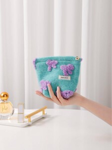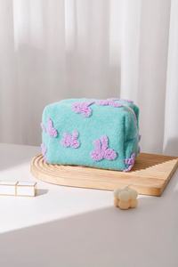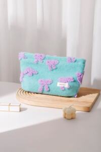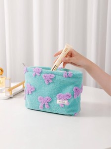 新しいスタイルのドーパンコントラストカラーの新鮮な紫色のリボン化粧品袋大容量ポータブル枕バッグクラッチバッグブルー