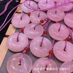 天然粉晶平安扣吊坠果冻体饱满圆润粉嫩 粉水晶平安扣项链diy配件