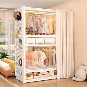 シンプルな子供用ワードローブハンガー家庭用床置き寝室コート収納ラック多層オープンワードローブ収納ラック